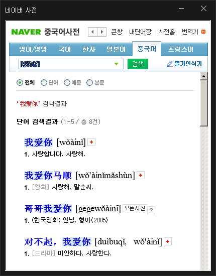 네이버 미니 웹사전 "열기" 클릭 하면 해당 단어를 네이버 사전에서 번역해줍니다.