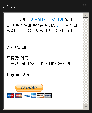 프로그램 사용 하시다가 도움이 되었다면 기부를 받고 있습니다!!!