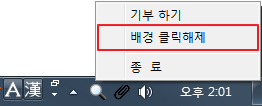 하단 작업표시줄에 있는 트레이 아이콘에서 배경 클릭해제 후, 사용 하시면 됩니다.