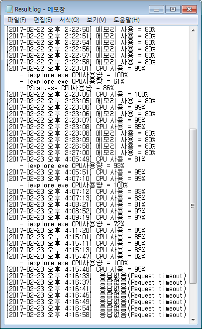 기능을 추가 했습니다. 또한, 핑(ping) 지연 및, Request time out 감지하여 로그를 남길 수 있습니다.